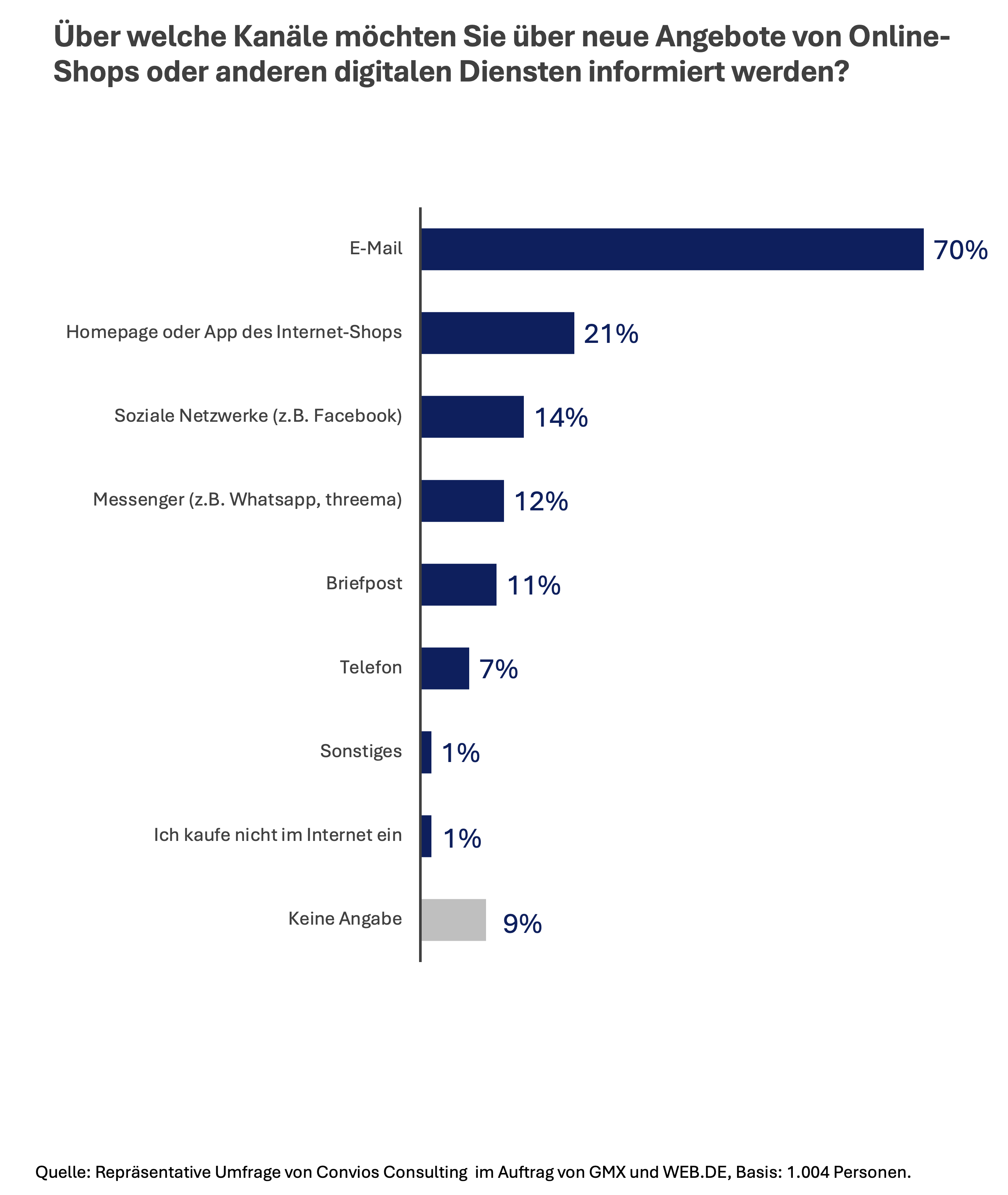 Über welche Kanäle möchten Sie über neue Angebote von Online-Shops oder anderen digitalen Diensten informiert werden?